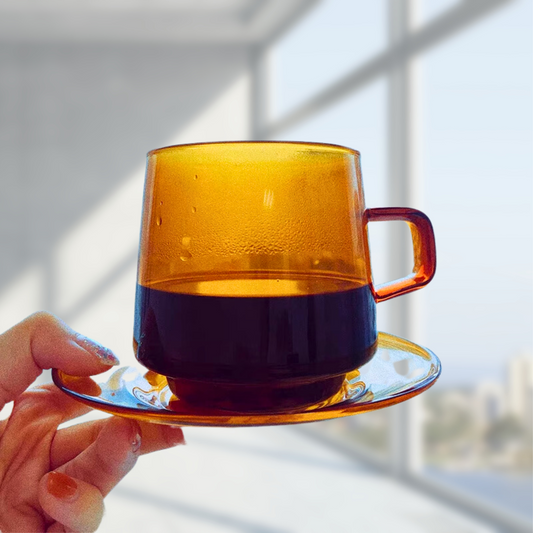 Handblown Amber Glass Cup and Saucer Set